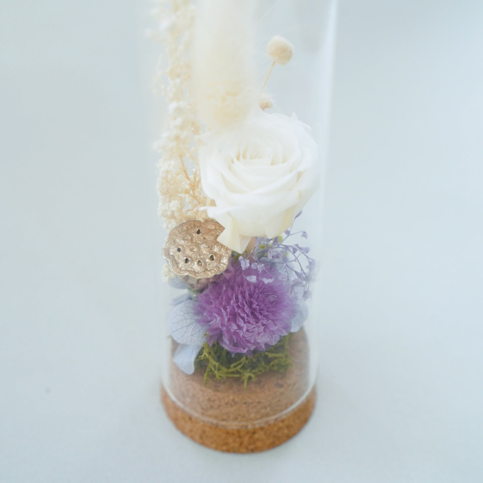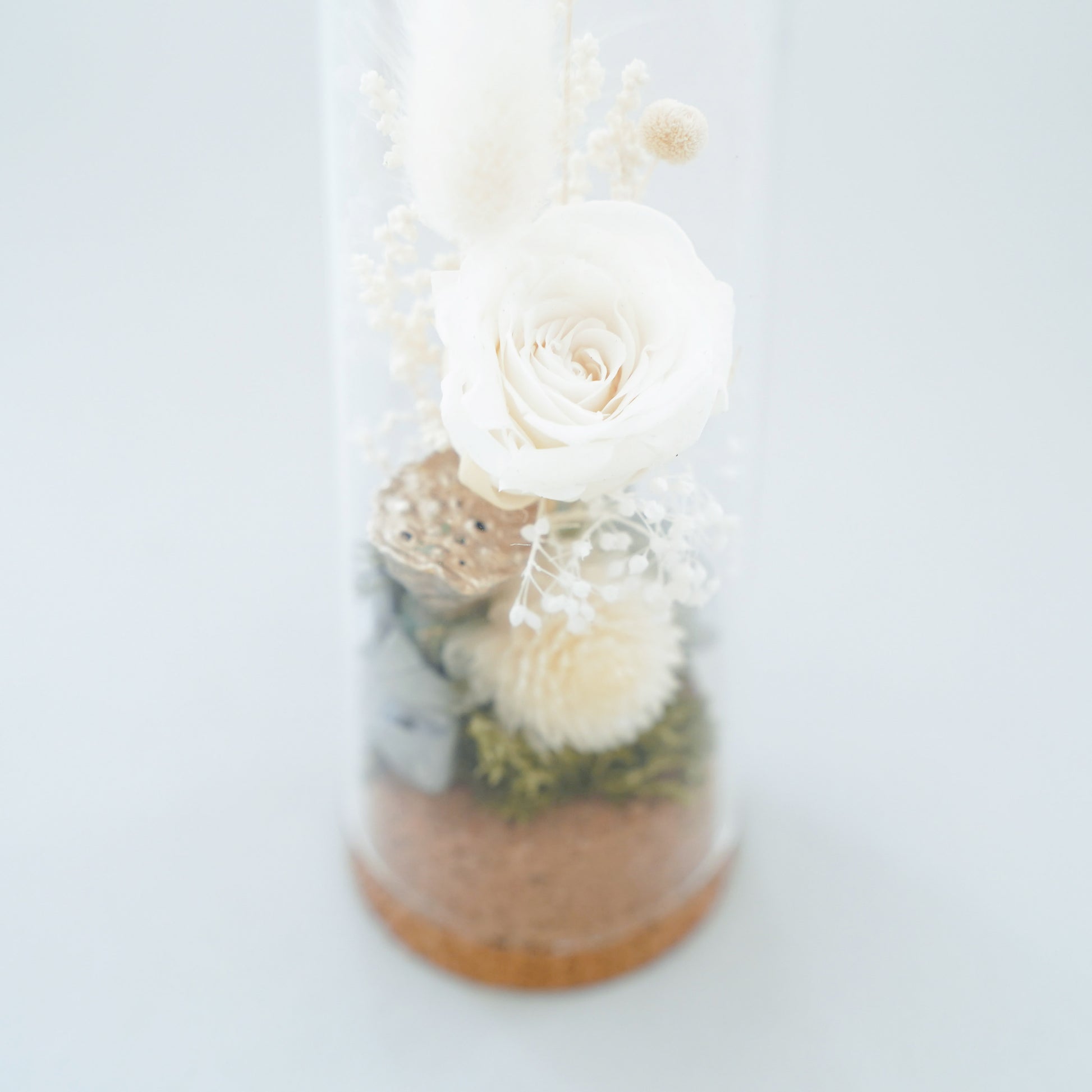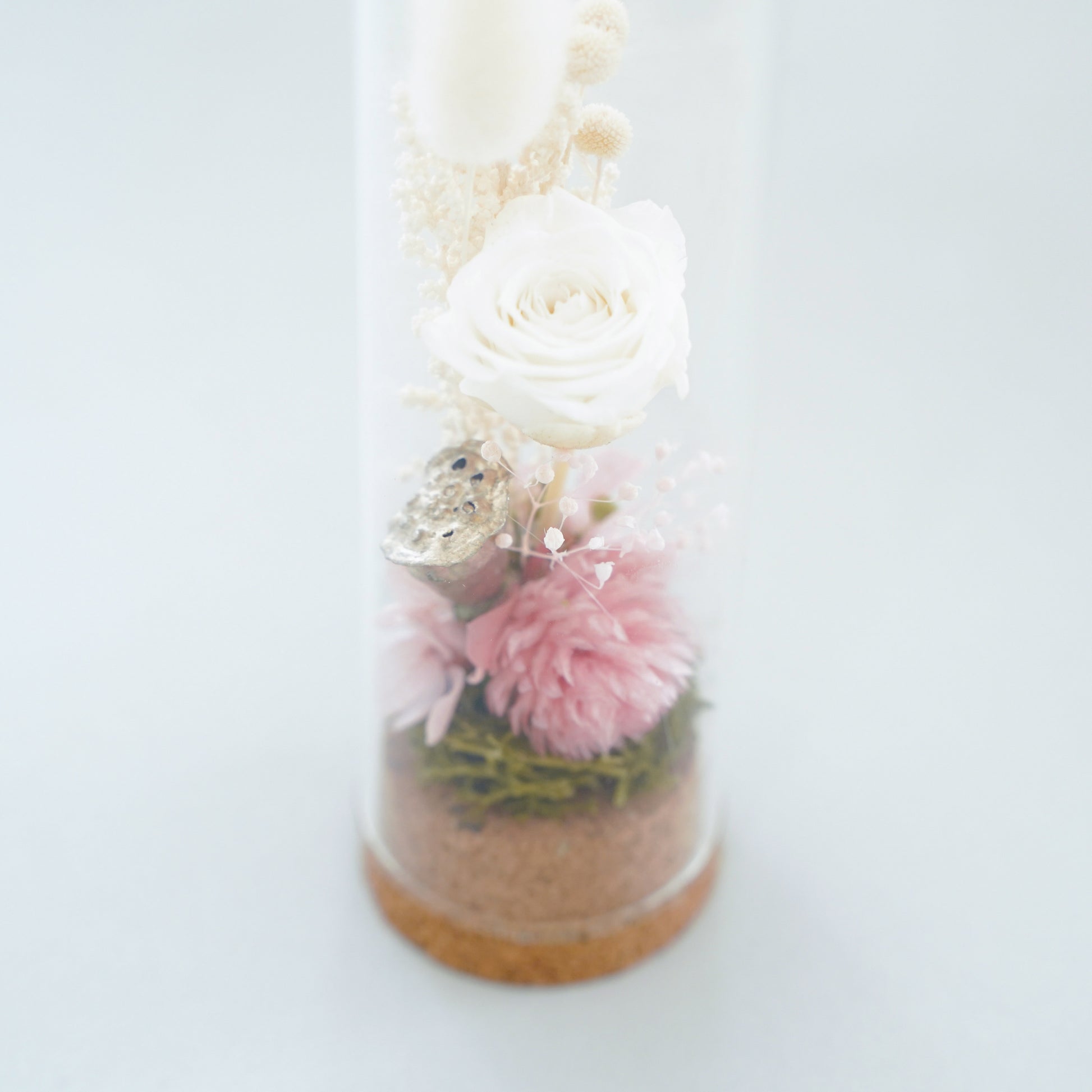 素材:プリザーブドフラワー/ドライフラワー/ガラス/コルク